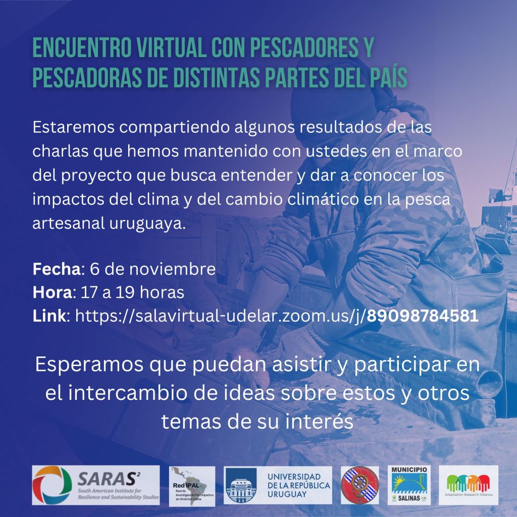 El pasado lunes 6 de noviembre realizamos nuestro primer encuentro virtual con pescadores y pescadoras artesanales de diversas localidades de pesca artesanal en Uruguay. En este evento, tuvimos la participación de 10 actores locales y 4 actores de instituciones académicas, además de nuestro equipo de investigación. Discutimos los principales hallazgos que hemos tenido desde el inicio del proyecto en relación con: